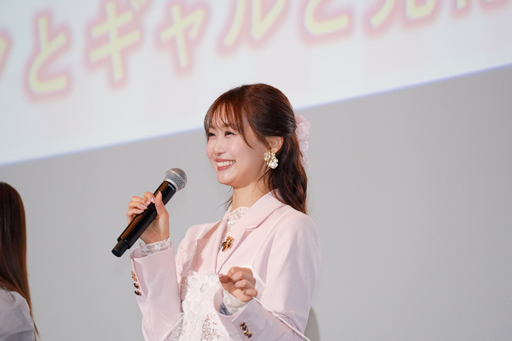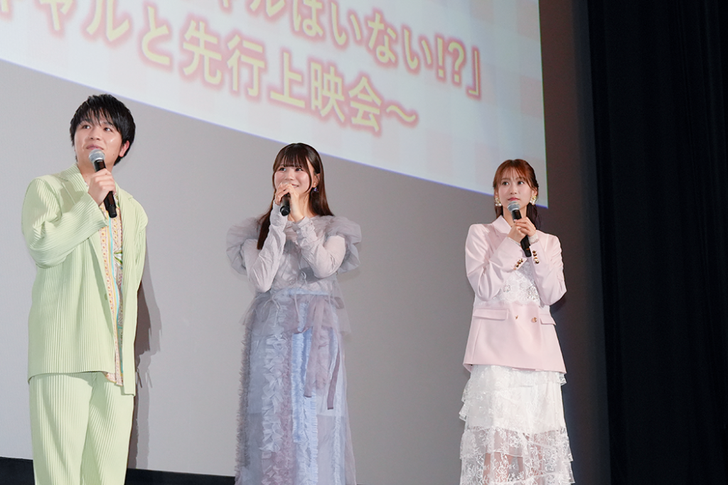 最後に三田監督から「全力で作ったタイトルなので、楽しんでいただけたら」と挨拶があり、芹澤さんからは「苦手だったギャルが好きになるかも」、稲垣さんからは「3人の距離感が変わっていく様子もこだわって収録しました」と先々が気になる発言も。その後、小村さんは芹澤さんを巻き込み、声をそろえて「このクオリティは、覇権です!」とファンに熱いメッセージを叫びました。さらに小村さんから「この作品を見て伊地知派か天音派か、オタクくん派か決めて欲しい 」という“宿題”が出され、作品通りの温かで楽しいイベントは幕を閉じました。