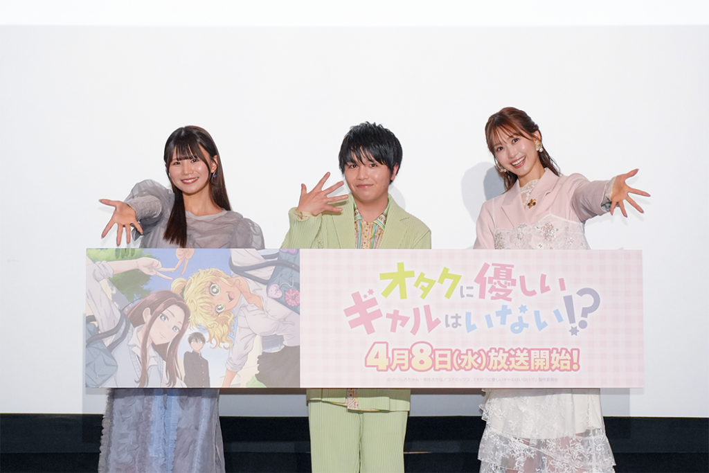 2026年3月15日(日)、アニメ『オタクに優しいギャルはいない!?』の先行上映会とキャスト、スタッフによるトークショーが、ユナイテッド・シネマ アクアシティお台場にて開催されました。登壇者は、瀬尾卓也役・小村 将さん、天音 慶役・稲垣 好さん、伊地知琴子役・芹澤 優さんの3人のキャストと、三田 新監督、トムス・エンタテインメントの川邉大輔チーフプロデューサー、キャラクターデザイン・総作画監督の松田りおんさんの計6名。